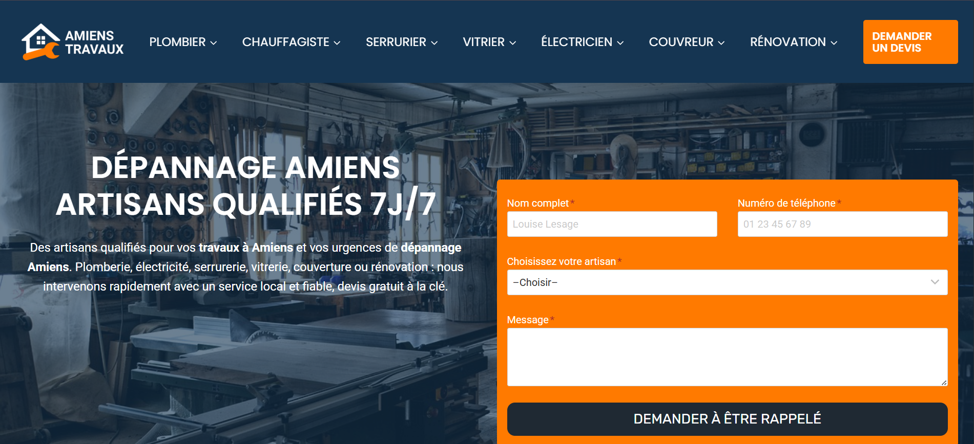 amiens-travaux.com : Site réalisé par Amiens WEB, illustrant tous les points de l’étape 2.